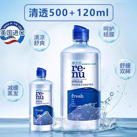 博士伦清透500ml+120ml(请注意 是清透) 500ml+120ml,49元/套 16套/箱 2025.04--2027.04 注册证号:国械注进20153162361 产品名称:隐形眼镜多功能护理液