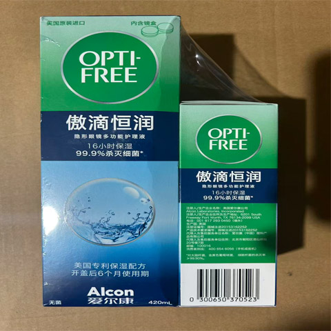 爱尔康恒润系列: 420ml +90ml 有效期: 恒润420ml:2025-02--2028.01 恒润90ml:2025-01--2027.1 产品名称:隐形眼镜多功能护理液 注册证号:国械注进20153162252