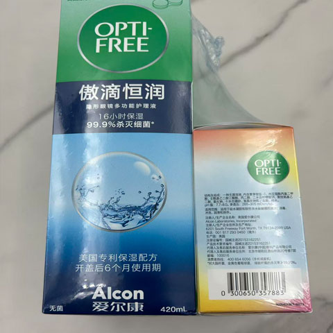 | 爱尔康恒润系列: 420ml +乐明60ml 有效期: 恒润420ml:2025-02--2028.01 乐明60ml:2025-05--2027.5 产品名称:隐形眼镜多功能护理液 注册证号:国械注进20153162252