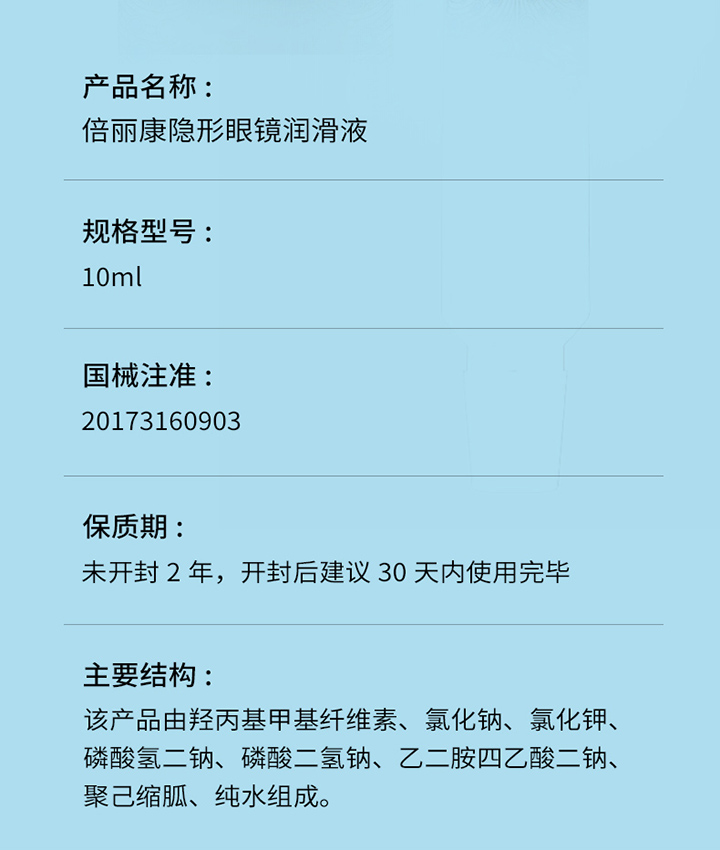 | 倍丽康润滑液10ml 10ML 1.8元/支 10支 起售 生产日期 2025.11-2027.11 生产商:陕西仁康药业有限公司 注册号:陕食药监械生产许20150059号 产品名称:隐形眼镜润滑液 注册证:国械注准20173160903