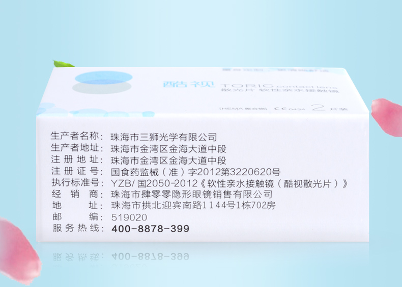 定做范围: 近视0.00 至 -20.00,每0.25一级(超出范围暂时无法定制) 散光0.00 至 -5.50 每0.25一级 轴位 0 至 180 ,轴位5度一级 基弧8.4/8.6/8.9,默认为8.60 含水量38% 中心厚度0.08 直径14.2mm 可接受定制单散 定制周期: 轴位10°、20°、160°、170°、180°需3个工作日 非以上轴位的需7个工作日(顺丰航空件) 注意:请备注近视度数/散光度数/轴位(框架度数/隐形度数) ,矫正数据,建议不要换算,提供验光度数由厂家换算! 基弧统一默认为8.6mm 此款年抛0.00平光的可以接受定制 投诉:到货一个月之内在镜片未损坏情况下,可进行投诉,返回检测。