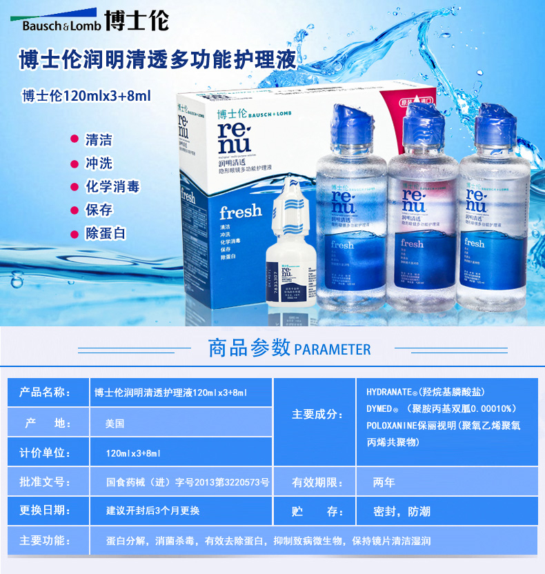 注册证号:国械注进20163162782 产品名称:隐形眼镜多功能护理液