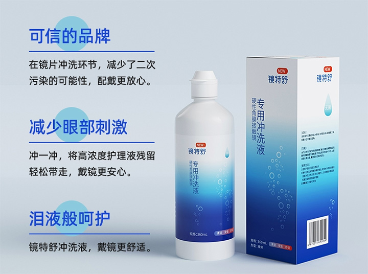 镜特舒 硬性角膜接触镜 专用冲洗液 360ML 20元/瓶 4瓶/组 24瓶/箱 2025.04--2027.03 建议零售价 50元 生产产地:安徽合肥 生产商:欧普康视科技有限公司 卫生许可证号:皖卫消证字(2014)第0244号