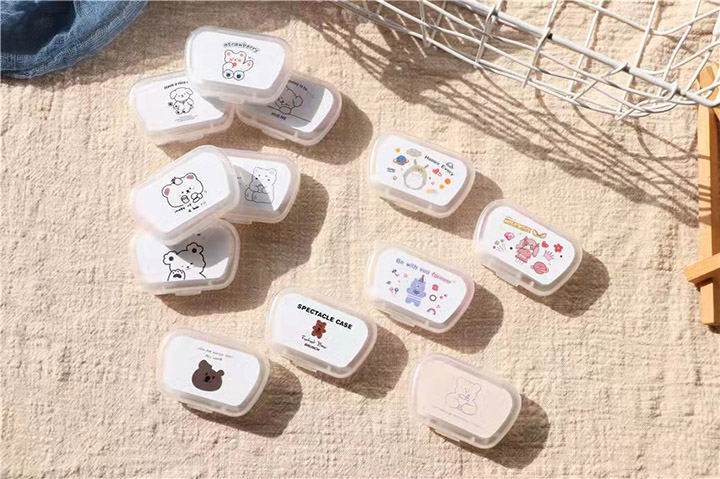 像鱼288 0.78元/个 50个/组 尺寸: 60*39*17mm 规格:一箱800个 重量:18g 伴侣盒套装组成:双联盒、镊子 ,配戴棒、镜子。 (已版权登记)
